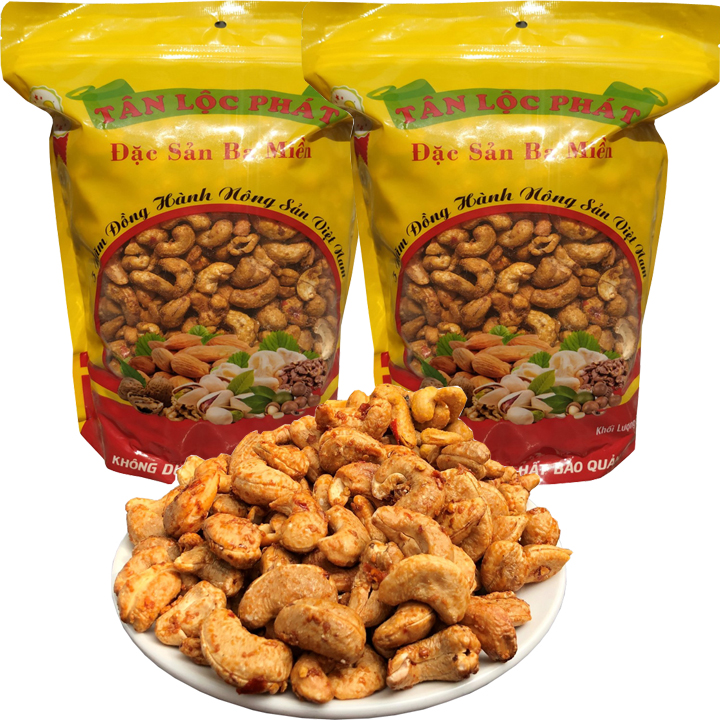 1Kg Hạt Điều Rang Tỏi Ớt Thương Hiệu Tân Lộc Phát - 2 Túi Zip