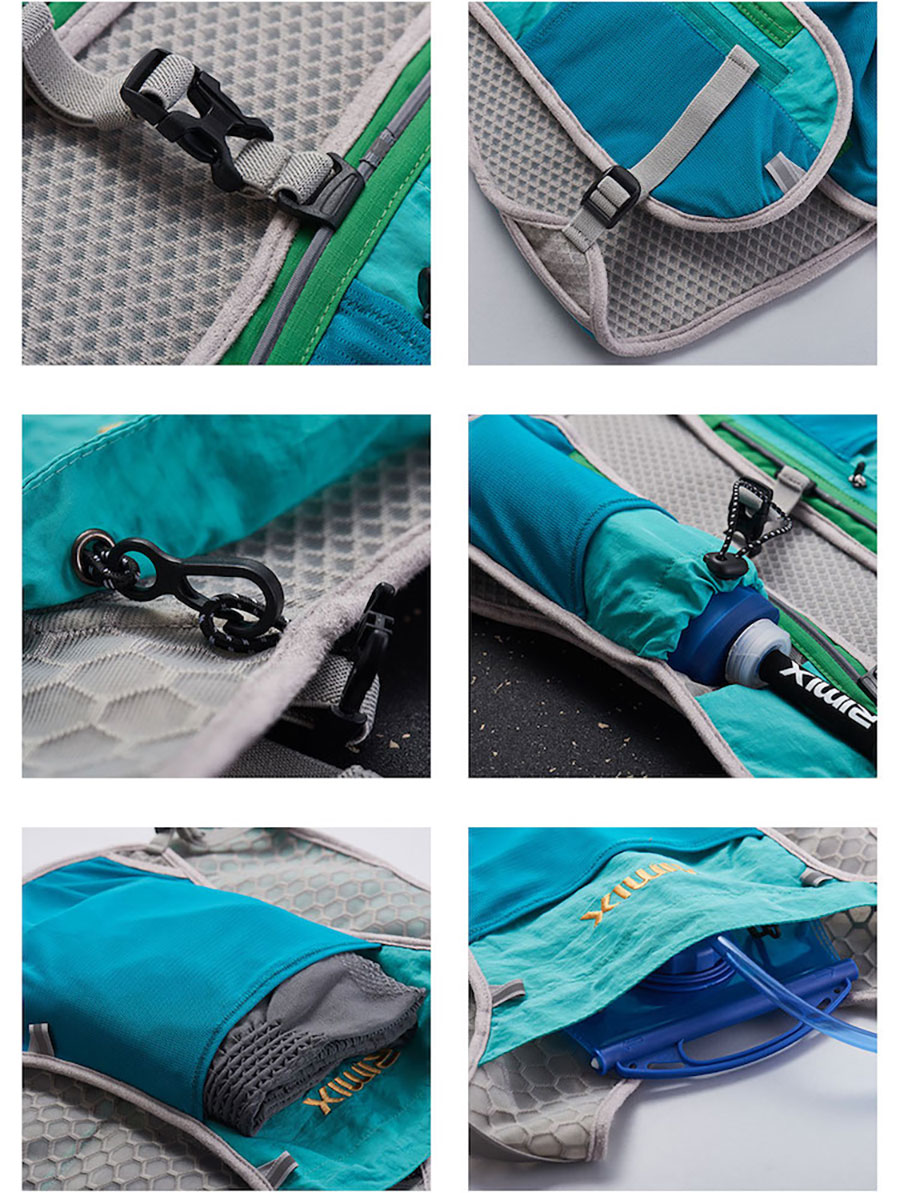 - Kéo các ngăn khóa ra, để đồ dùng và túi nước vào áo vest balo rồi đeo sau lưng đi chạy hay leo núi, đạp xe địa hình.