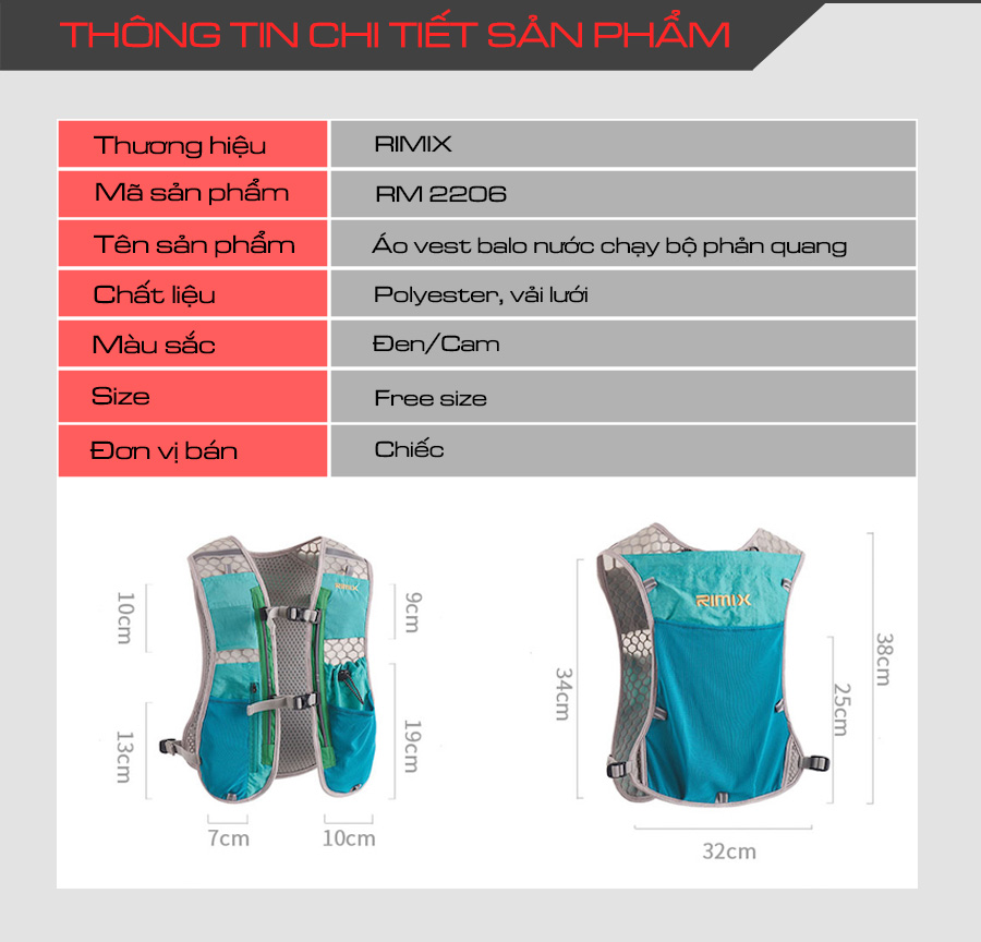 ÁO VEST NƯỚC , BALO NƯỚC CHẠY BỘ PHẢN QUANG RIMIX RM2206