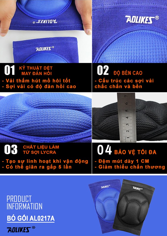 Băng bảo vệ đầu gối cao cấp Aolikes - Tom Sport