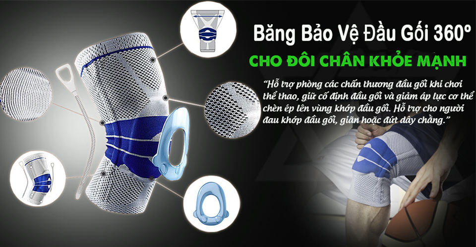 Băng bảo vệ đầu gối 360º, băng gối chính hãng giúp bảo vệ toàn diện cho khớp gối, đai bảo vệ đầu gối 360º phòng tránh các chấn thương khi chơi: Bóng rổ, đá banh, bóng bàn, bóng truyền, chạy bộ, đạp