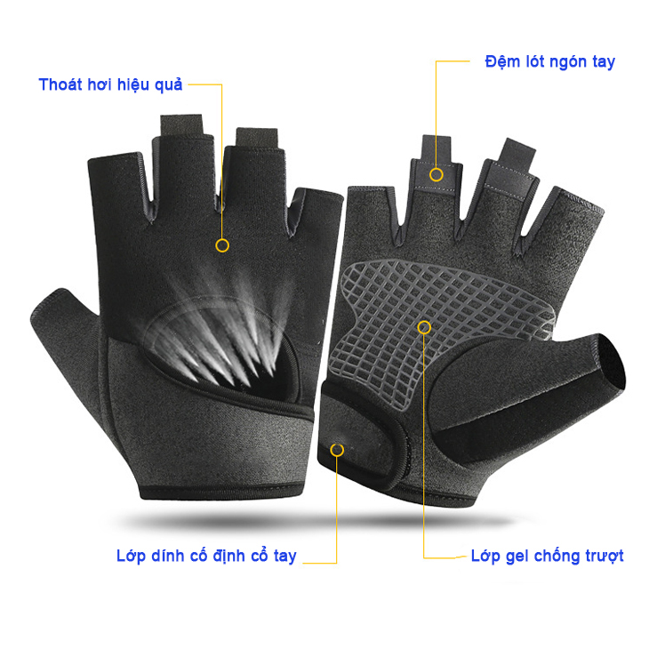 Lòng bàn tay Gel có độ bám dính tốt, nhằm hạn chế chống trơn trượt, chấn thương khi tập luyện.