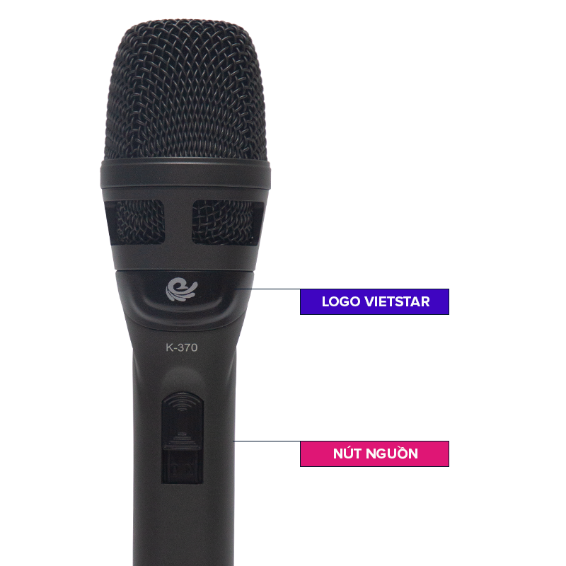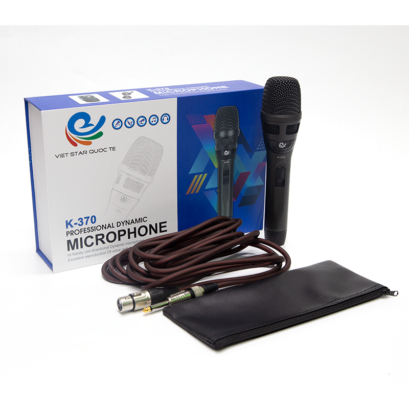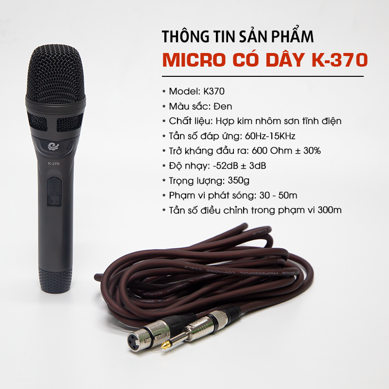 Bộ 1 Micro Karaoke Có Dây Chuyên Dùng Cho Loa Kéo, Amply, Vỏ Bằng Hợp Kim Chống Rơi Vỡ, Hút Âm Cực Tốt Model K370 - Chính Hãng