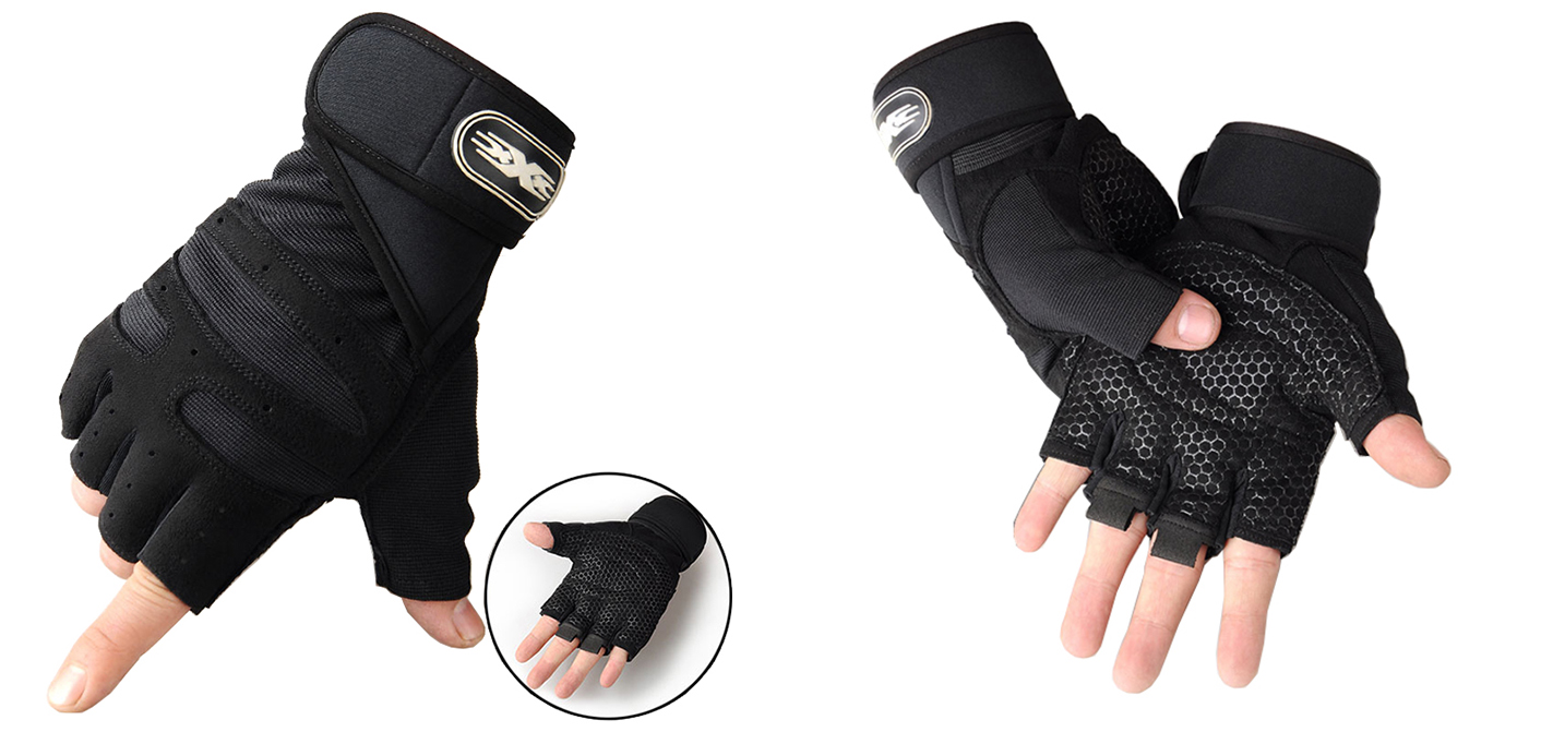 Bộ 2 găng tay tập gym có dây cuốn bảo vệ cổ tay kết hợp (size L)