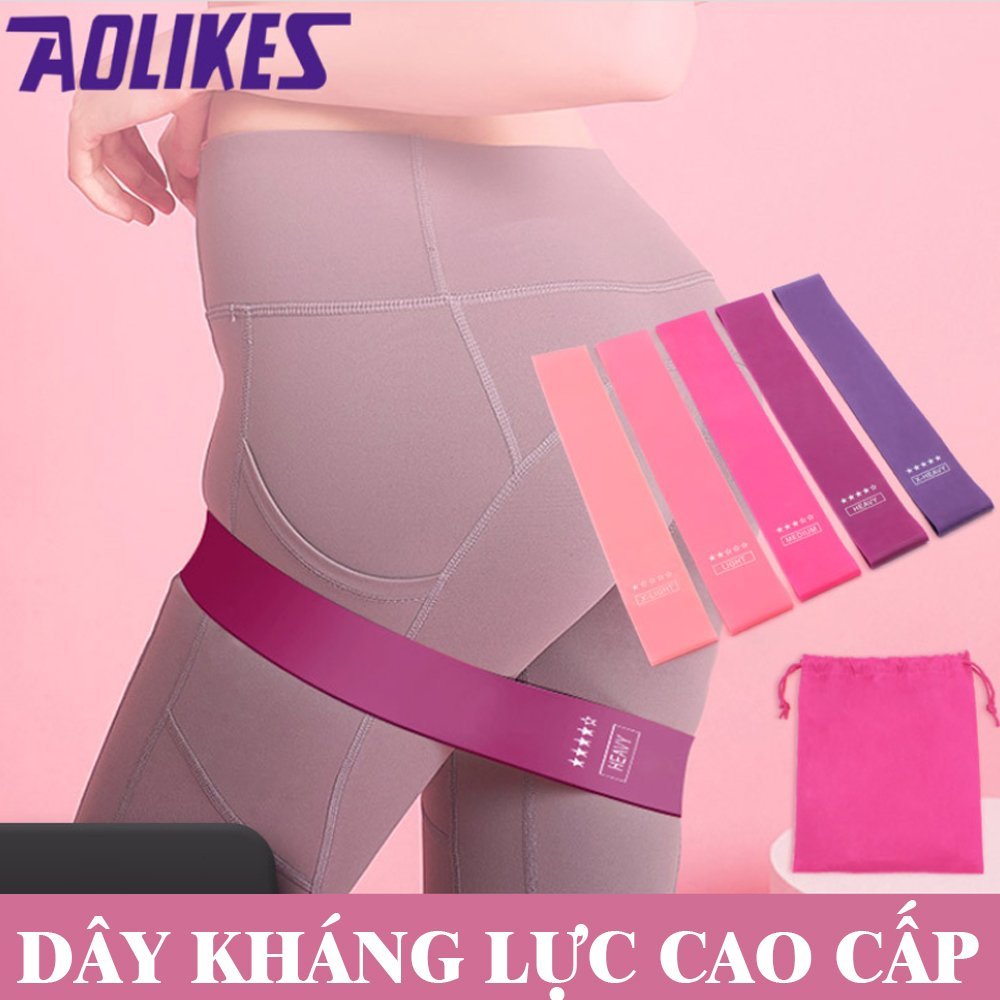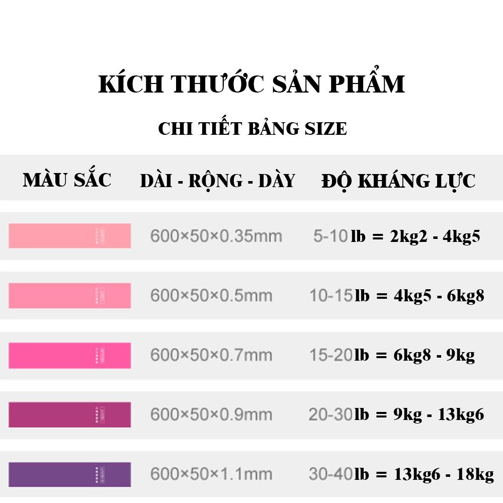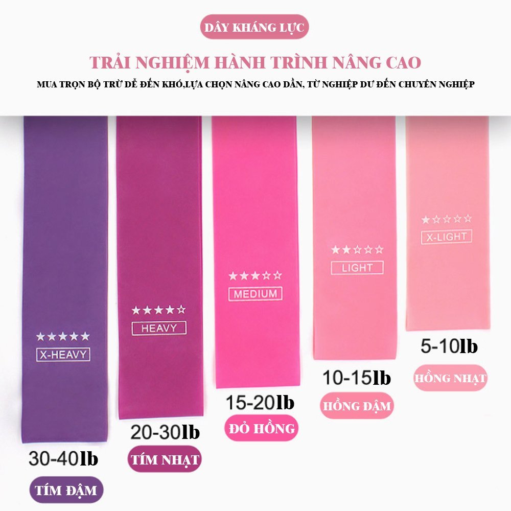 Bộ 5 dây kháng lực tập gym, dây đàn hồi Miniband đa năng tập Mông Đùi Chân, độ kháng lực cao kèm theo túi đựng - Tom Sport