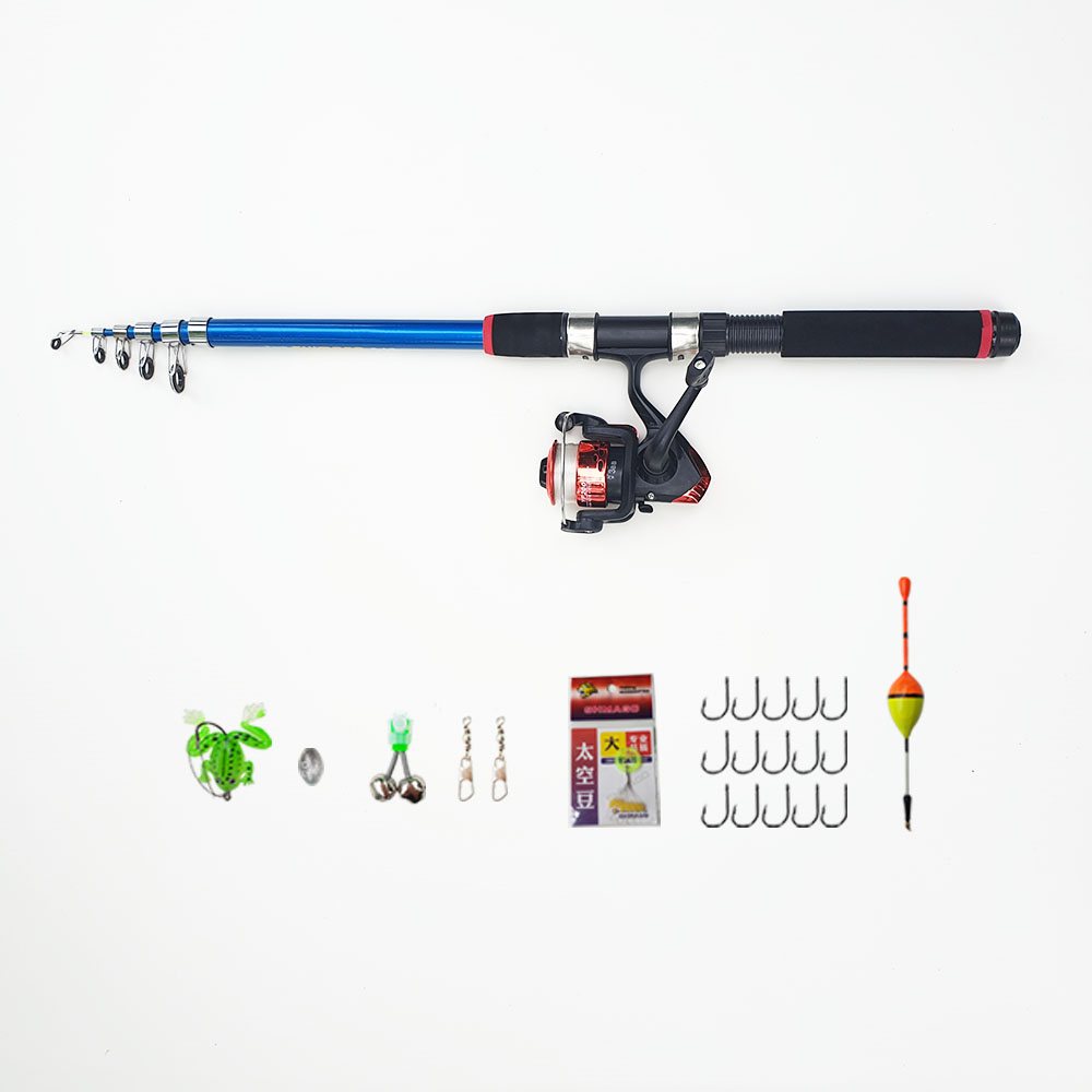 Bộ cần câu rút cacbon kèm máy + dây + bộ phao lưỡi và phụ kiện, bộ khung thon mảnh, tay cầm vững chắc, phù hợp với người mới tập câu