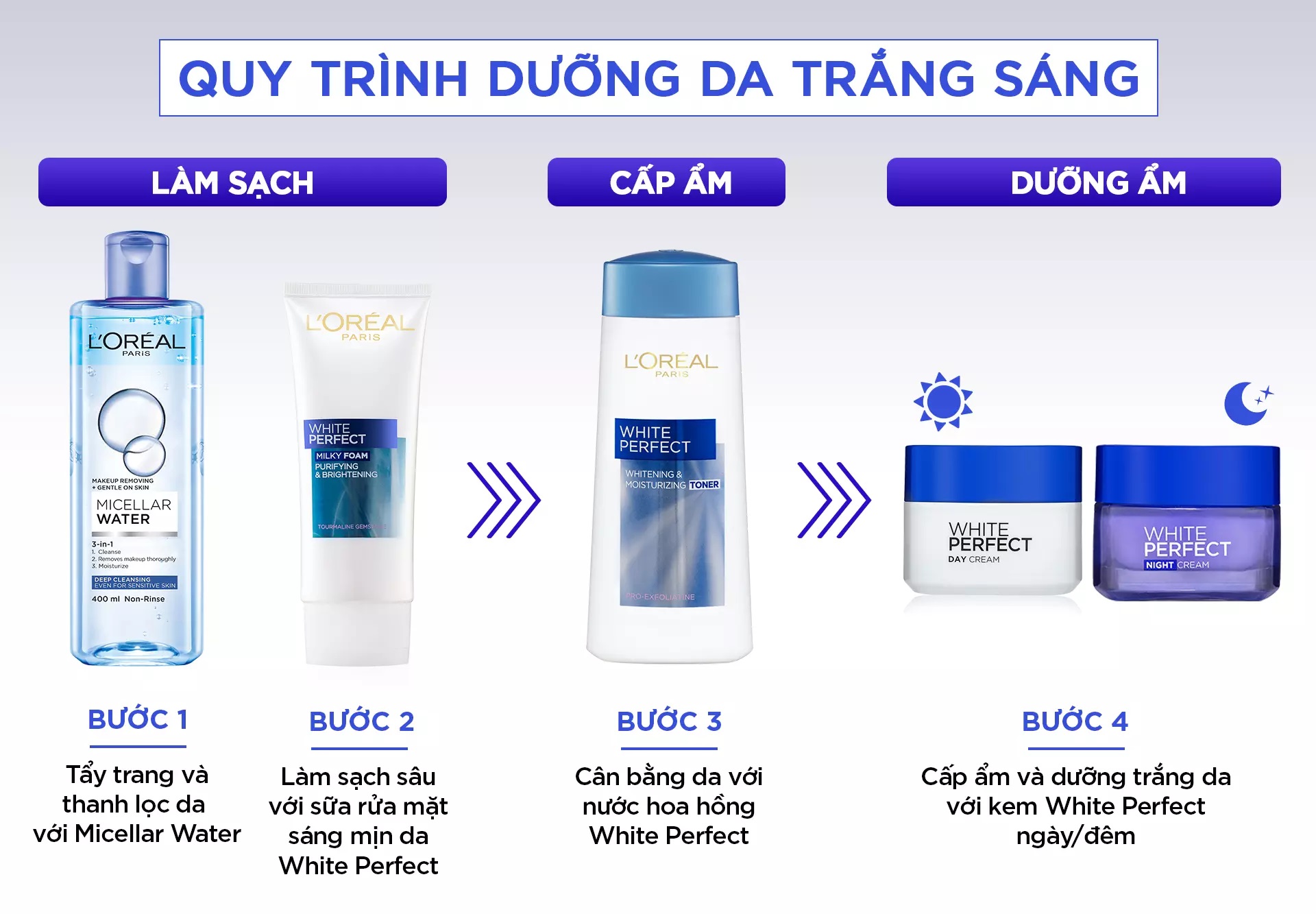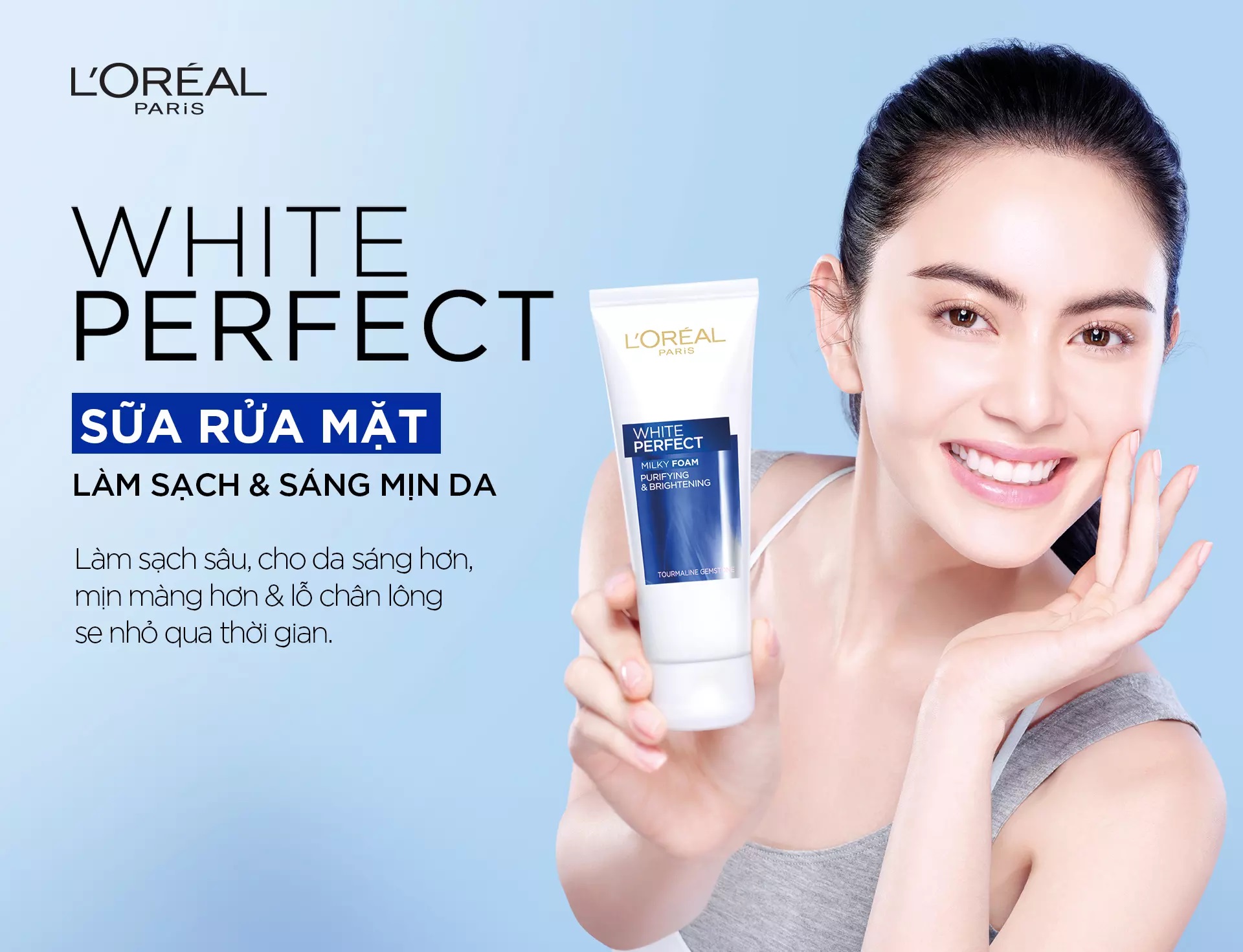 Bộ Sữa rửa mặt và Nước hoa hồng dưỡng trắng da L'Oréal Paris White Perfect