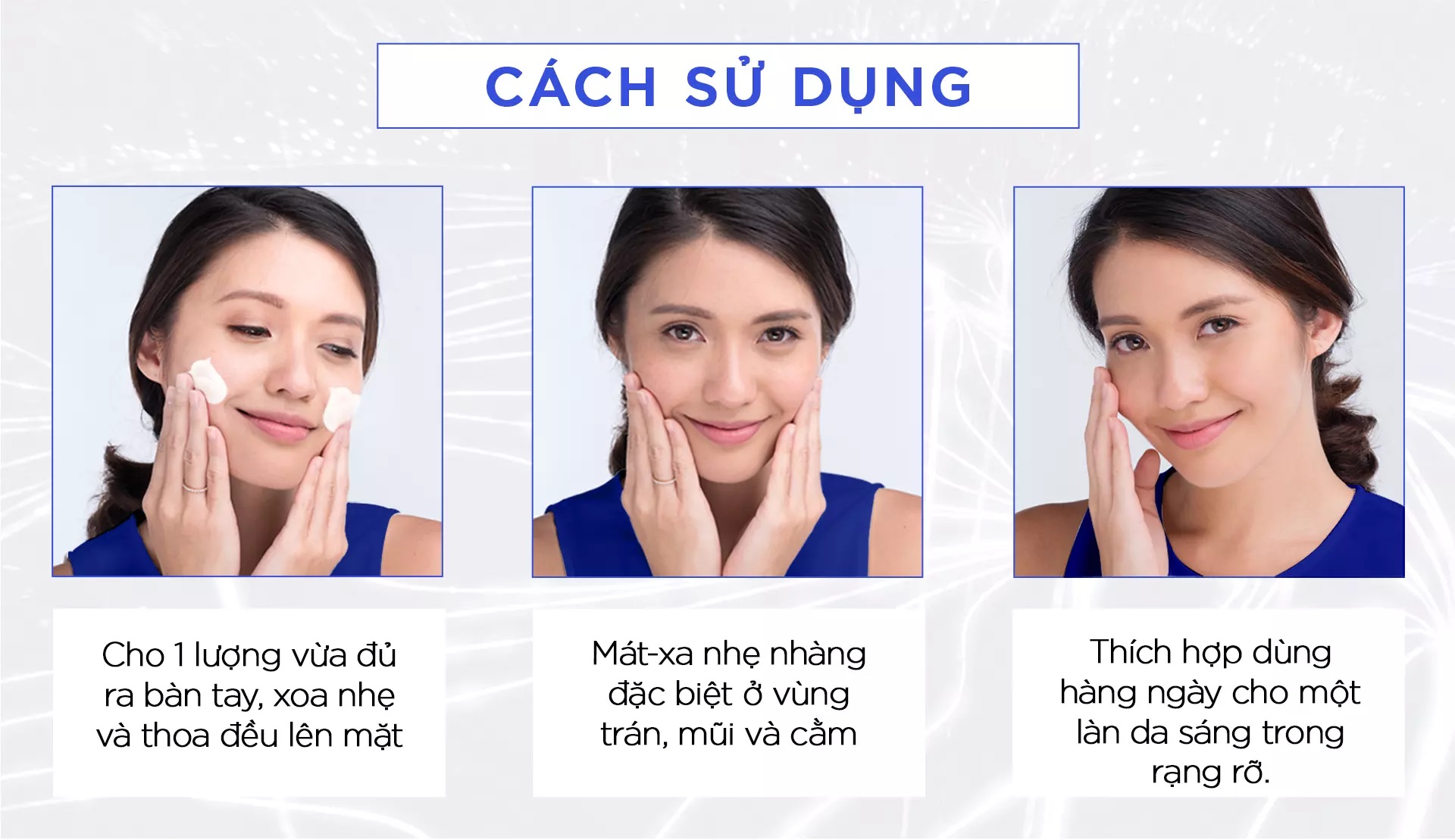 ● Ngày qua ngày, làn da đều màu, trắng mịn và tươi sáng rạng rỡ.