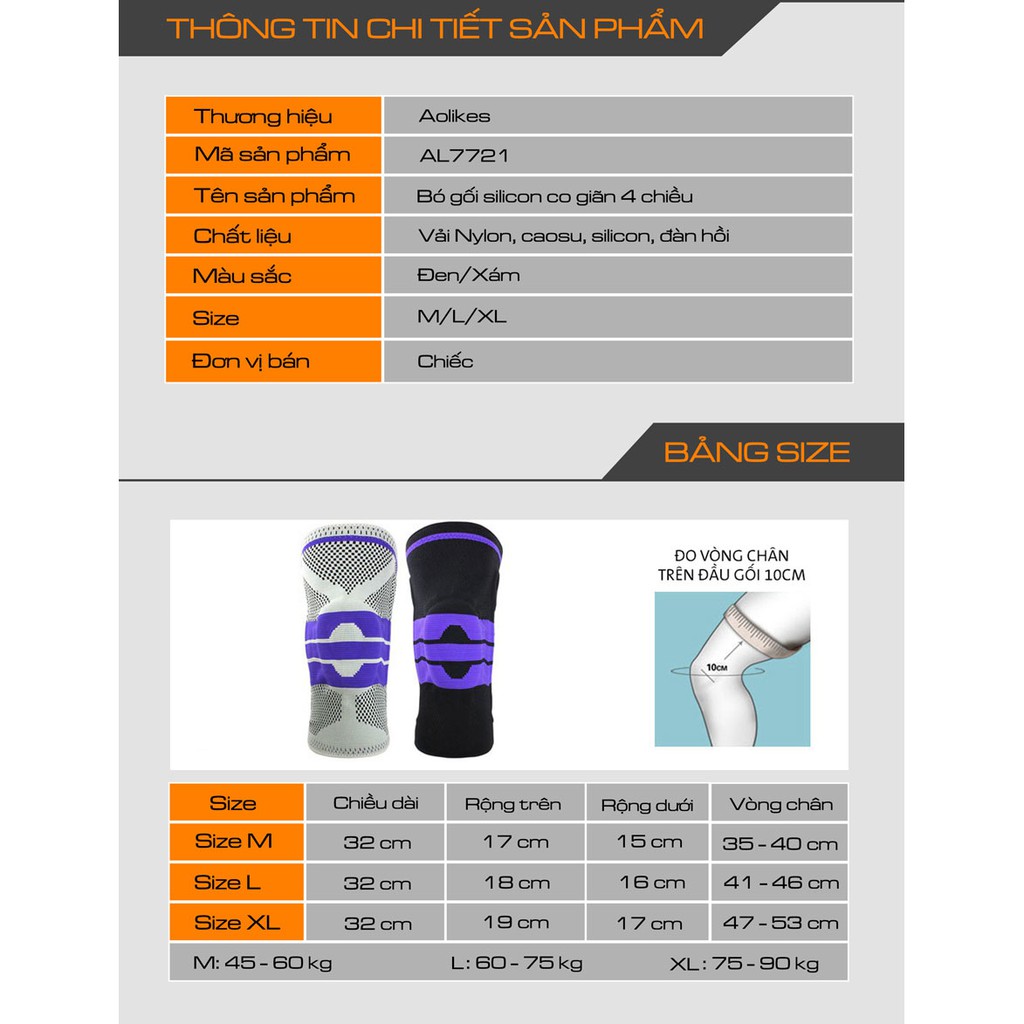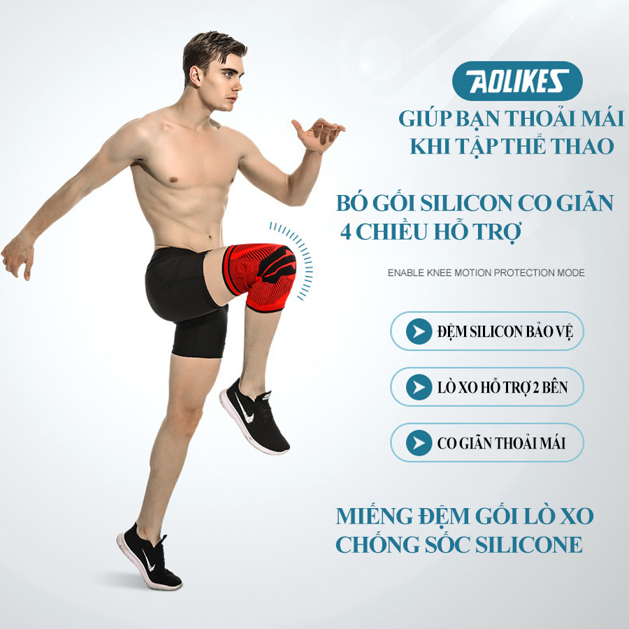 Bó gối Silicon co giãn 4 chiều cao cấp Aolikes - Tom Sport