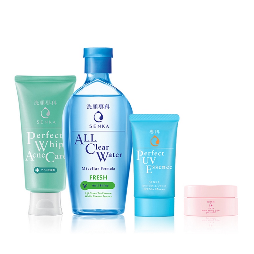 Bộ sản phẩm Senka làm sạch và chống nắng dành cho da mụn - Tặng Kem dưỡng trắng da ban đêm Senka 15g