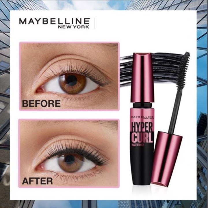 Mascara Dài Mi và Cong Mi Maybelline New York Hyper Curl Waterproof Chuốt Mi Đen Không Lem Không Trôi 9.2ml