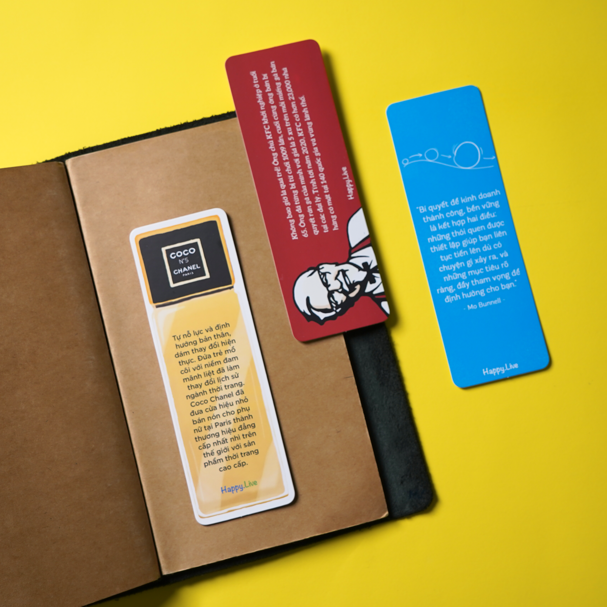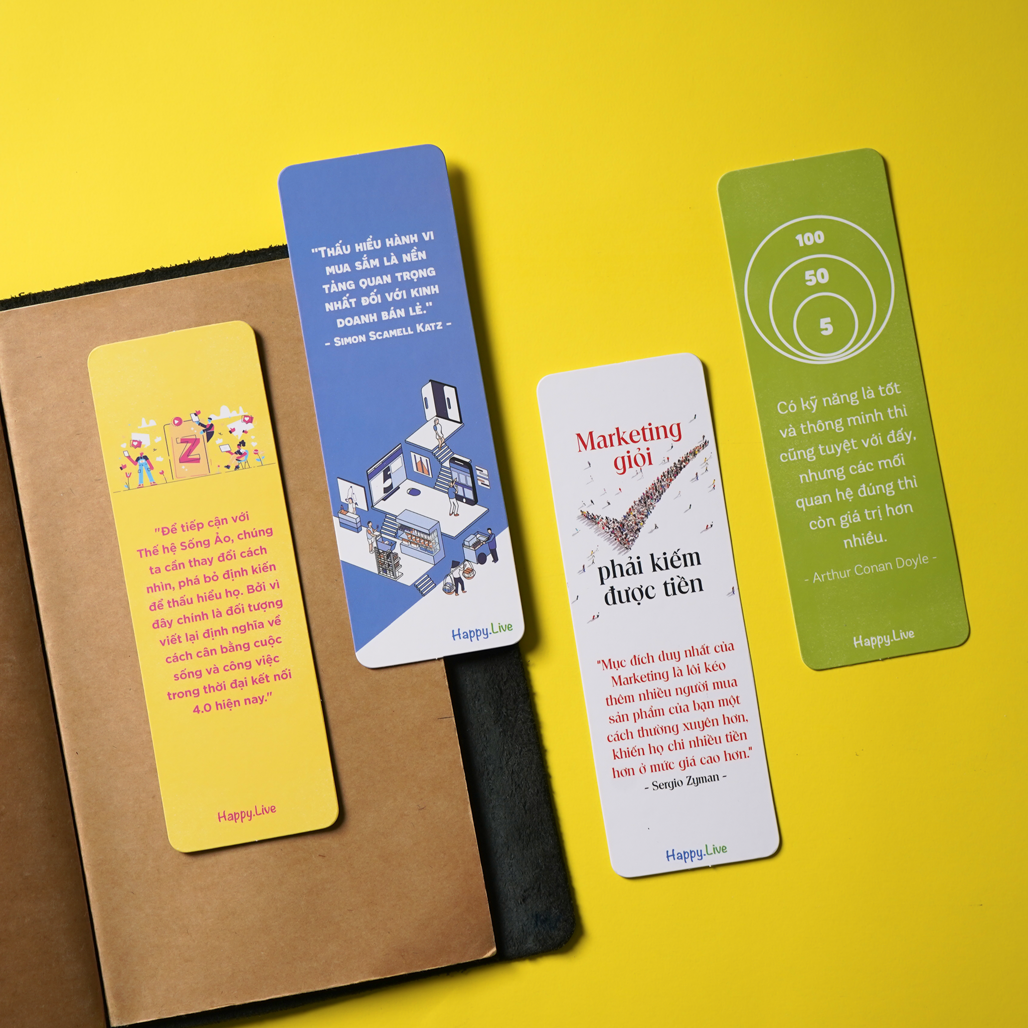 Bộ Bookmark Kinh doanh độc quyền của Happy Live lấy cảm hứng từ những câu chuyện kinh doanh thành công của những ông chủ sở hữu các thương hiệu vang danh toàn cầu. Bên cạnh đó là những câu nói truyền cảm hứng về lĩnh vực kinh doanh - marketing - bán hàng - kết nối của các tác giả kinh doanh có tiếng trong tủ sách Kinh doanh của Happy Live. Mỗi một bookmark là một câu chuyện truyền cảm hứng đến bạn đọc trên hành trình theo đuổi lĩnh vực kinh doanh - marketing này.