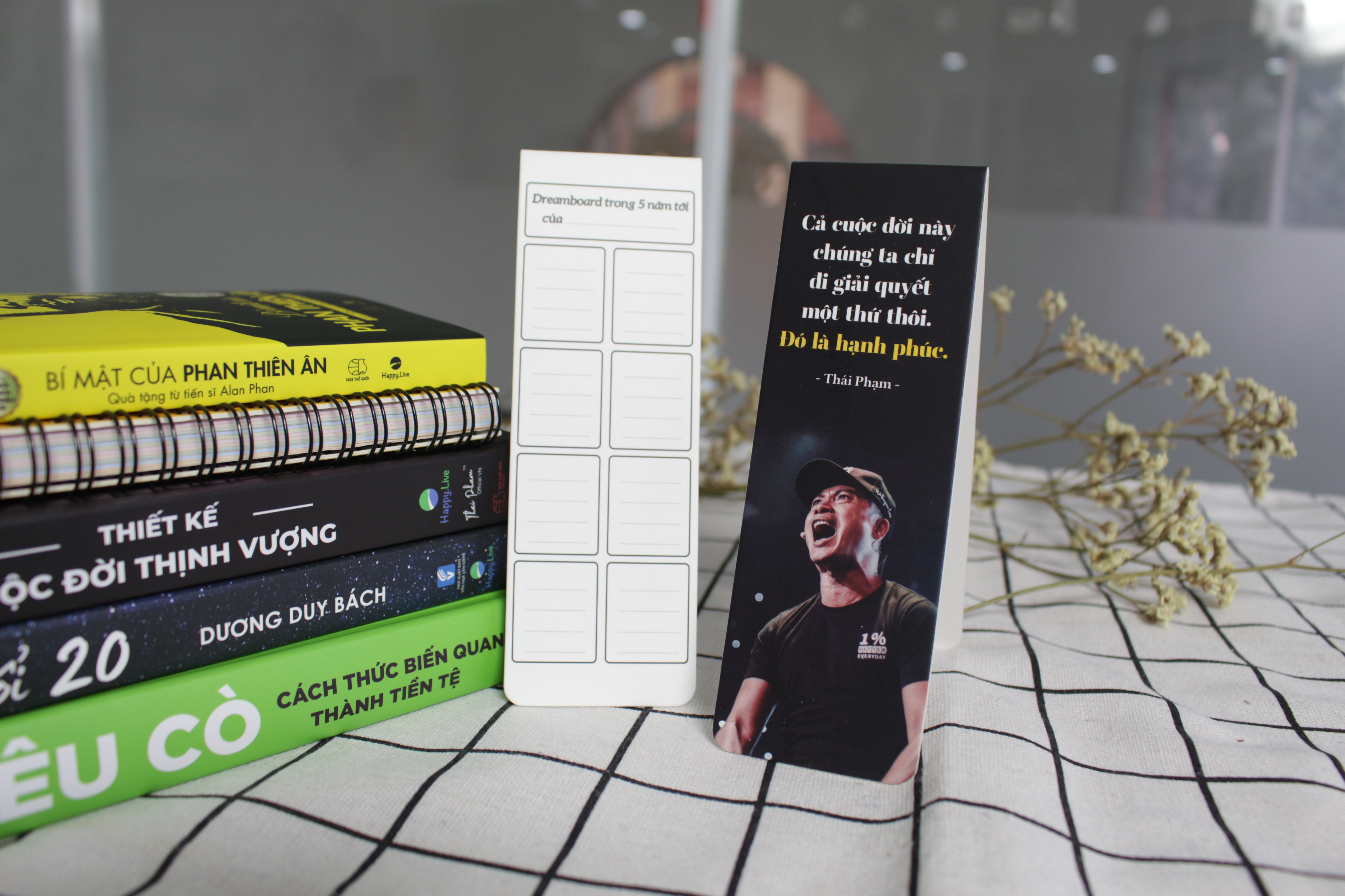 Đặc biệt, bạn còn có thể viết ra dreamboard bản thân trong 5 năm tới, và được ngắm nhìn nó mỗi ngày kèm theo hướng dẫn lập dreamboard của anh Thái Phạm – Founder Happy Live, tác giả sách Thiết kế cuộc đời thịnh vượng và biên dịch của rất nhiều cuốn sách bán chạy tại Happy Live.