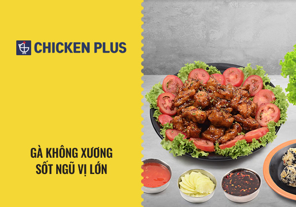 Chicken plus chuyên về các món gà chiên được tẩm ướp với công thức độc quyền và các vị sốt đặc biệt. Gà chiên với lớp bột mỏng bên ngoài mang lại cảm giác giòn tan, thịt bên trong ngọt mềm, thơm phức kết hợp với các loại sốt đa dạng, mang nhiều hương vị khác nhau tạo ra sự lựa chọn đa dạng cho nhiều thực khách.
