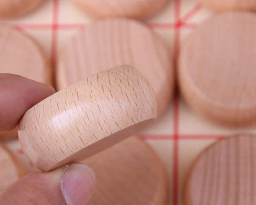 Quân cờ bằng Gỗ Sồi đường kính cỡ trung 3,4cm dày 1,3cm; đường kính cỡ đại 3,9cm dày 1,5cm
