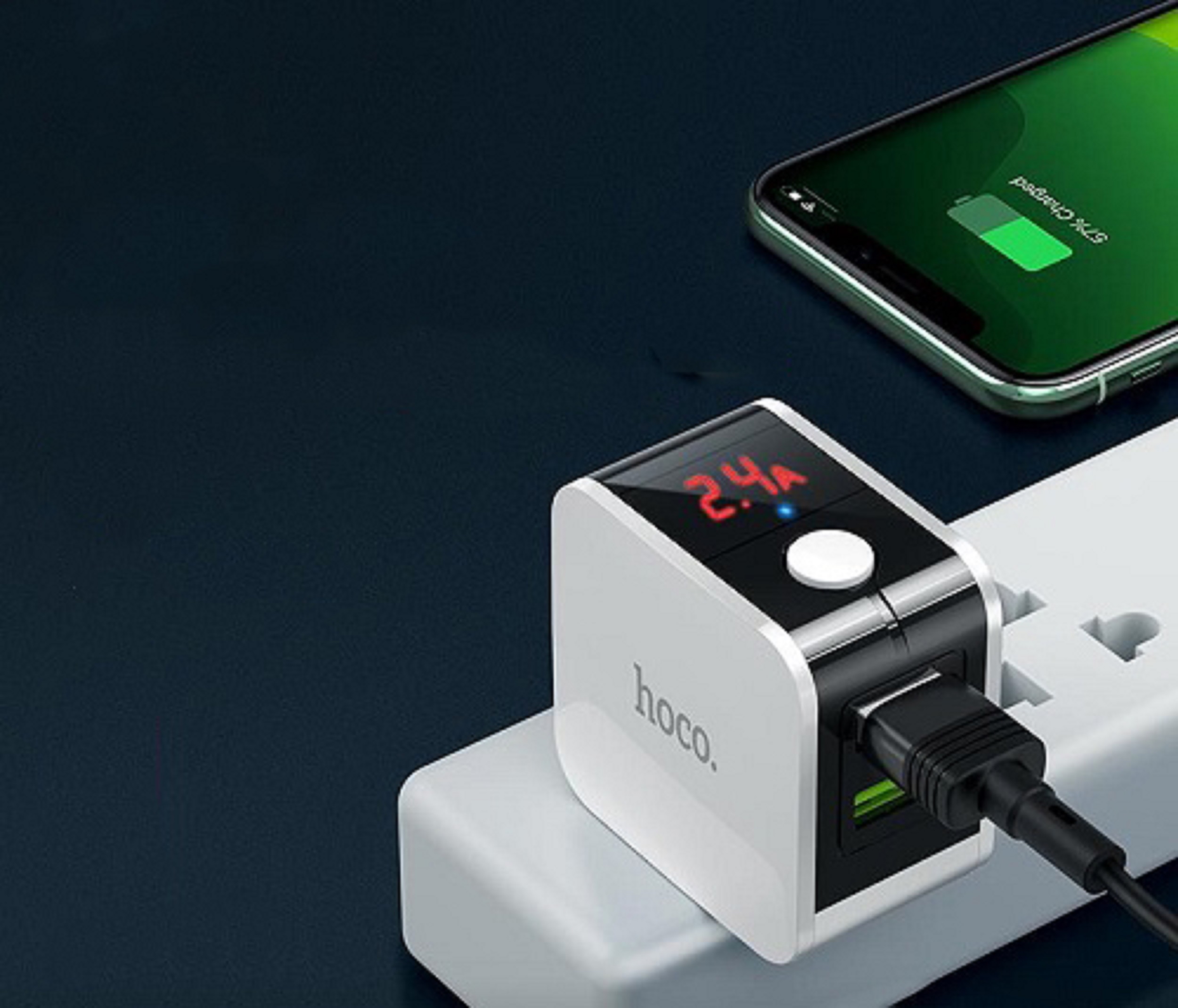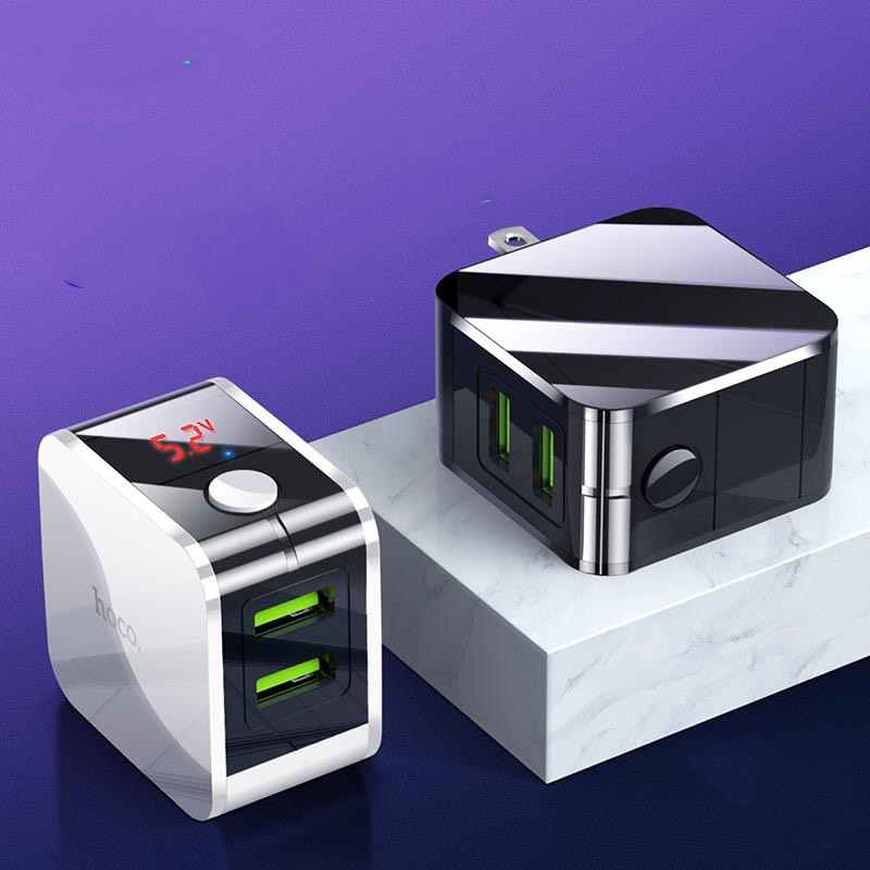 Cốc sạc nhanh 2.4A Hoco có màn hình LED 2 cổng tự ngắt nguồn chống chai pin ( 2 màu ) - Hàng chính hãng