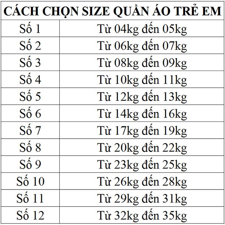 Size: 3 - 4 - 5 - 6 - 7 - 8 . Cho các bé từ 8kg đến 22kg