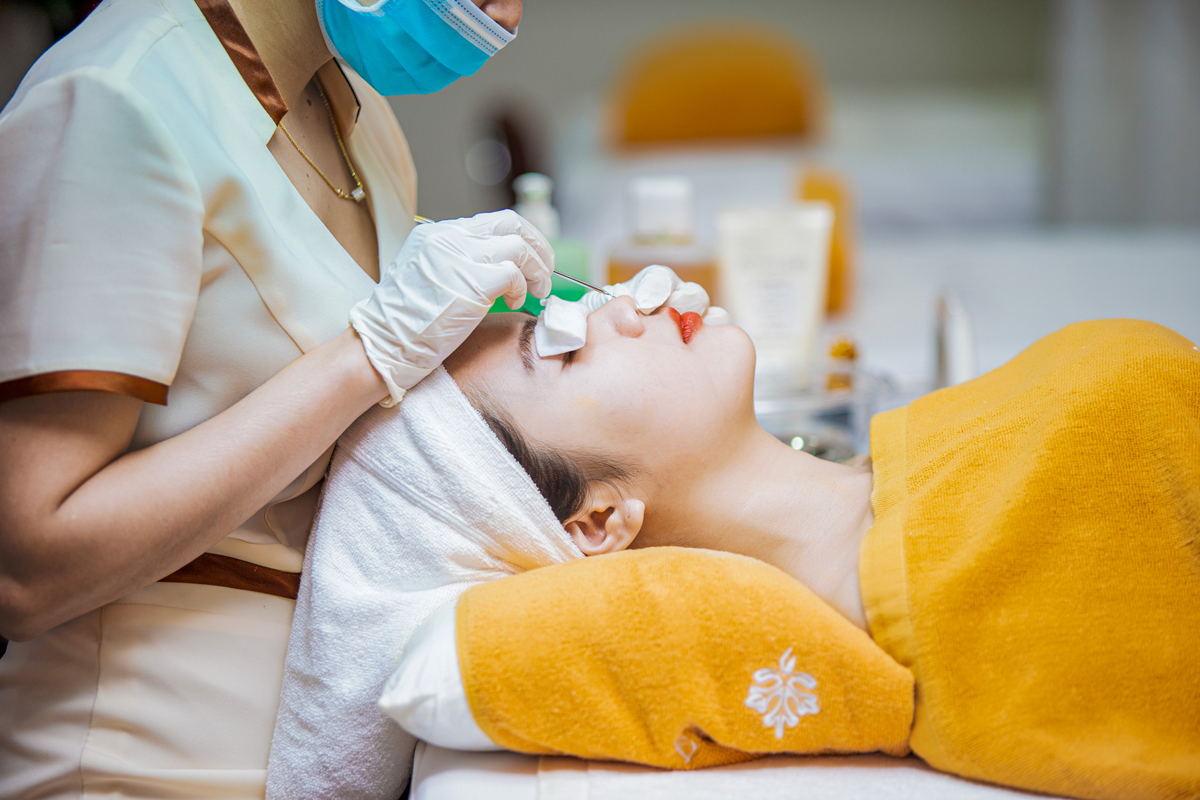 Bước 4: Xông hơi mặt - dưới tác động nhiệt lỗ chân lông trên da mặt tự động mở ra, hơi nước có tác dụng giúp lấy đi những bụi bẩn, độc tố ẩn chứa dưới da ra bên ngoài.
