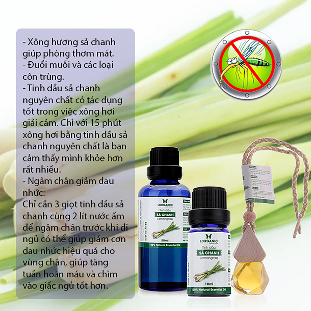 Combo tinh dầu sả chanh Lorganic (50ml) +tinh dầu sả chanh Lorganic treo xe hơi, tủ áo (10ml) LGN0082/ Tinh dầu thiên nhiên nguyên chất/ Hương thơm thiền tịnh/ Thích hợp dùng với đèn xông và máy khuếch tán.