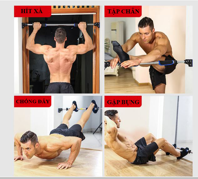 - Đa dạng các bài tập khi sử dụng xà đơn treo tường gắn cửa 2021 như: Hít xà,tập chân,hít đất,tập cơ bụ