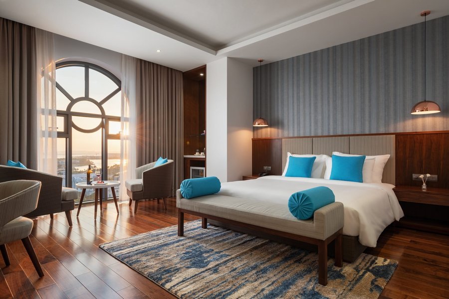 Mỗi căn phòng đều theo lối thiết kế hiện đại, kết hợp cùng những tông màu đặc trưng của khách sạn, tất cả tạo nên sự hài hòa với cảnh quan nơi đây. Bên cạnh đó, các phòng đều được trang bị cơ sở vật chất gồm những thiết bị và phương tiện hiện đại như ti vi thông minh, két sắt, minibar,…