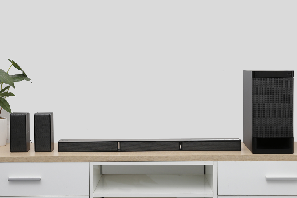 Hệ thống dàn âm thanh Sony 5.1 kênh dễ di chuyển và lắp đặt, gồm ba loại: loa chính, loa sau và loa siêu trầm với tổng công suất tới 600W.