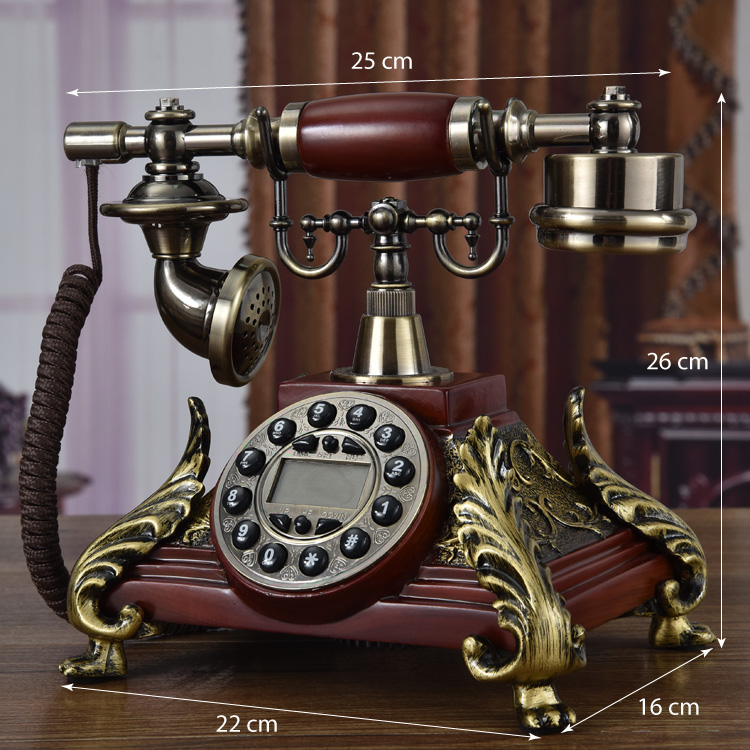 Điện thoại bàn cổ điển có các chi tiết được điêu khắc tinh xảo, kết hợp giữa đồng và gỗ tự nhiên theo phong cách cổ điển, rất ấn tượng và vô cùng đẹp mắt giúp không gian sống của bạn trở nên sang trọng, cổ kính bất ngờ.