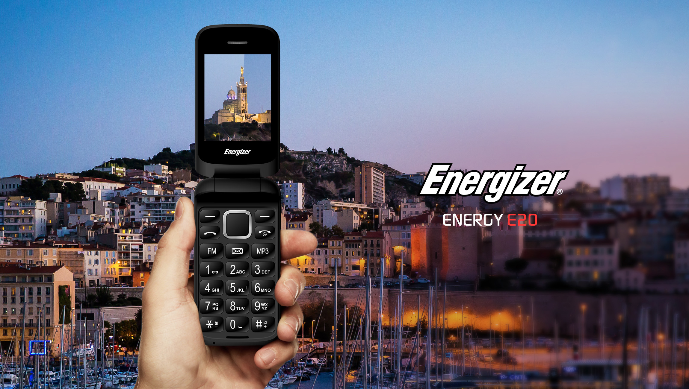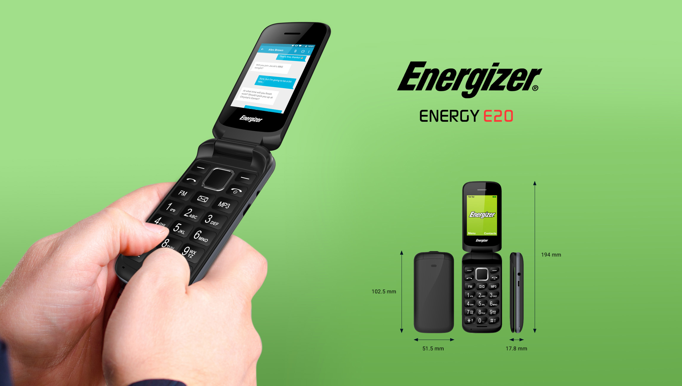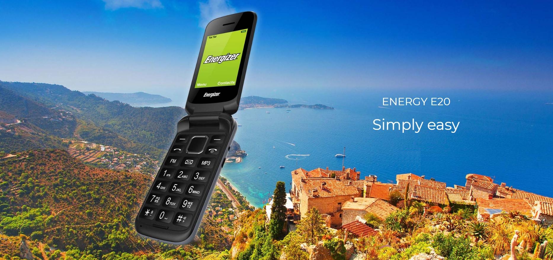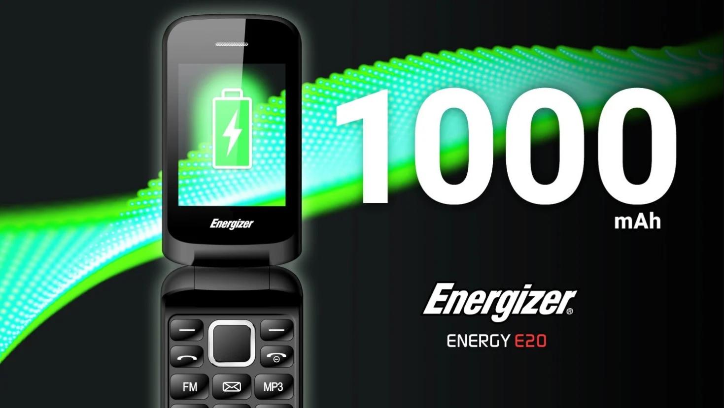 Điện thoại Energizer E20 có viên pin ấn tượng 1000 mAh bên cạnh ưu điểm thiết kế cổ điển - nắp gập tiện dụng với các phím lớn thao tác nhắn tin dễ dàng.