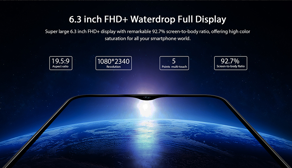 Màn hình FHD + siêu lớn 6,3 inch với tỷ lệ màn hình so với thân máy vượt trội 92,7%, mang lại độ bão hòa màu cao cho tất cả thế giới điện thoại thông minh của bạn.