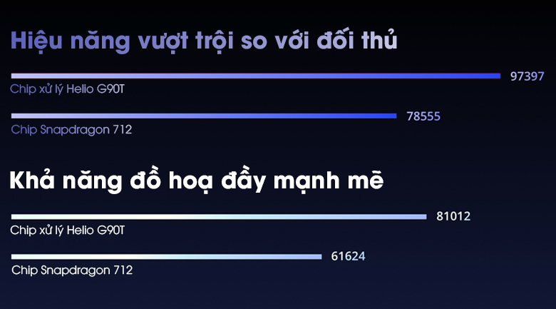 Realme 6 là smartphone đầu tiên của Realme được trang bị con chip Mediatek Helio G90T - dòng chip được thiết kế hướng tới việc chơi game với xung nhịp lên tới 2.05 GHz. Kết hợp với thanh RAM 8 GB và đồ họa Mali G76, Realme 6 mang đến trải nghiệm mượt mà trên hầu hết các tựa game trung bình, khá hiện nay.