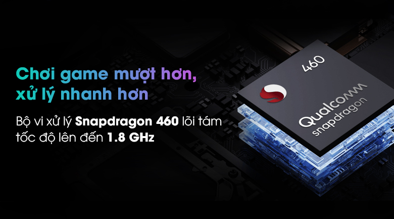 Bên cạnh đó chipset Snapdragon 460 8 nhân với tốc độ xử lý lên đến 1.8 GHz mang lại những trải nghiệm gaming hay giải trí mượt mà.