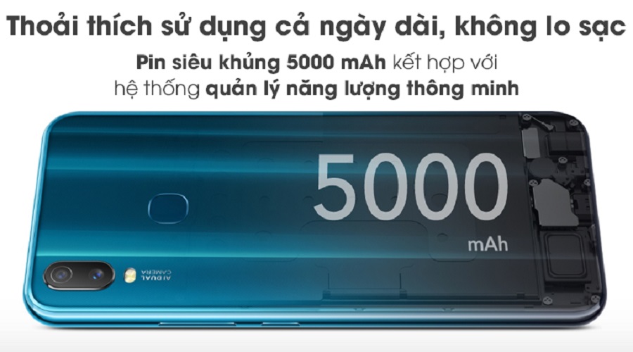 Chiếc điện thoại VIVO sở hữu viên pin dung lượng “khủng” 5.000 mAh cho bạn thời lượng sử dụng điện thoại miệt mài trong một ngày dài chỉ với một lần sạc.
