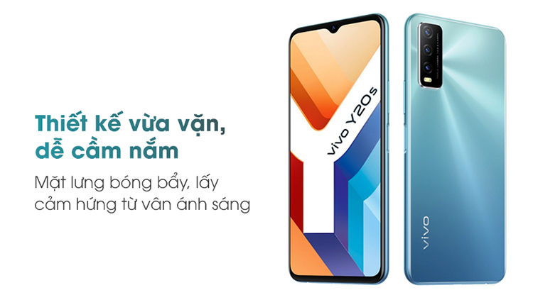 Điện Thoại Vivo Y20s với điểm nhấn trong thiết kế đến từ hiệu ứng chuyển sáng đồng tâm ấn tượng phát ra từ cụm camera sau, giúp cho Vivo Y20s trở thành một món trang sức cao cấp, tỏa sáng theo từng chuyển động của bạn. Các cạnh viền được bo cong kết hợp cùng màn hình nổi 2.5D cho cảm giác cầm nắm, sử dụng thoải mái. Các chi tiết có độ hoàn thiện cao, thân máy mỏng gọn cứng cáp tạo nên sự cao cấp trên một thiết bị tầm trung.