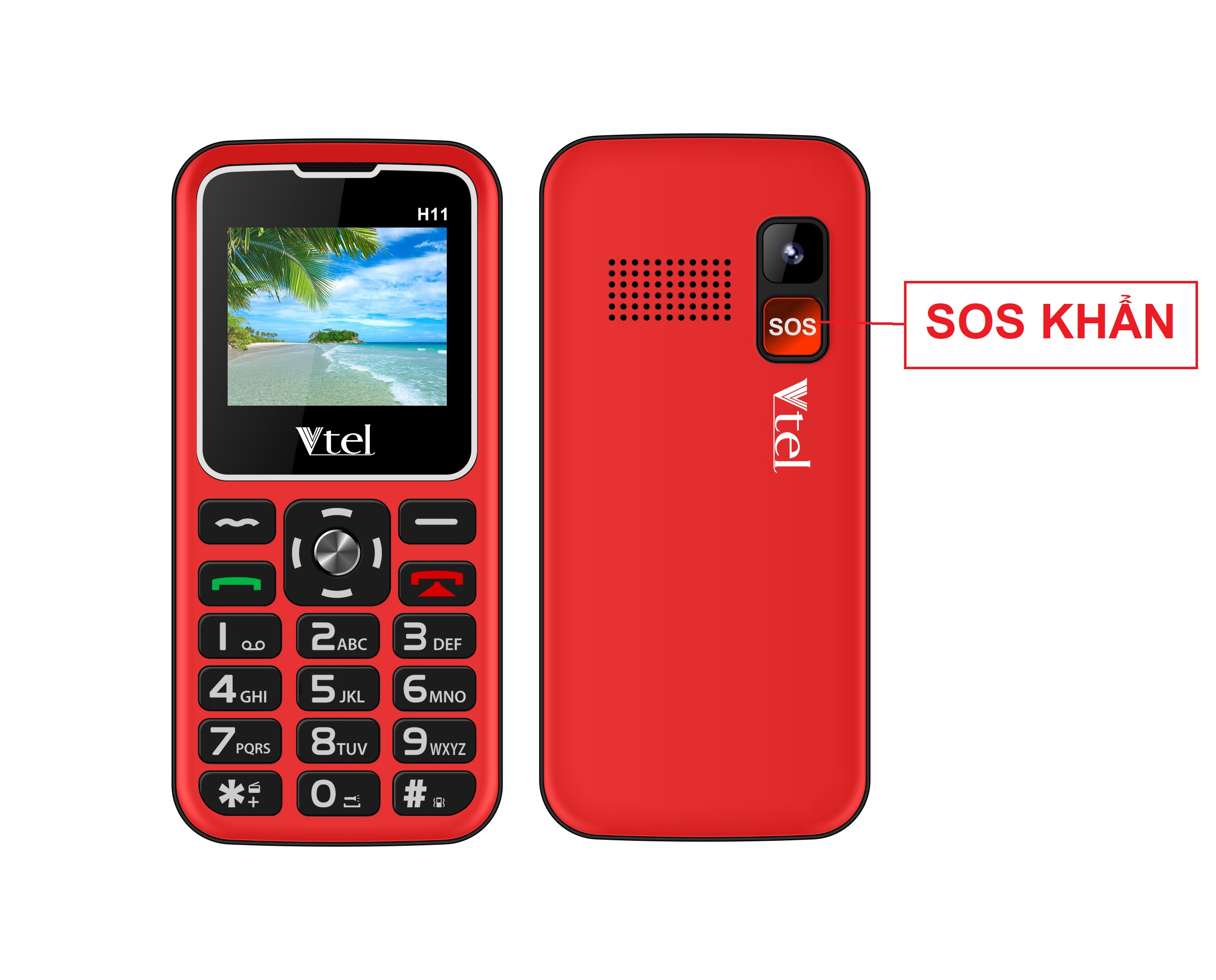 Máy Vtel Happy H11 trang bị nút bấm SOS (Cuộc gọi khẩn), người lớn tuổi chỉ cần bấm nút này, máy sẽ gọi điện cho người nhà mà không cần phải nhớ số, Ngoài ra, khi bấm nút này thì máy sẽ đồng thời nhắn tin cho người nhà bạn biết là có người cần gọi bạn gấp!