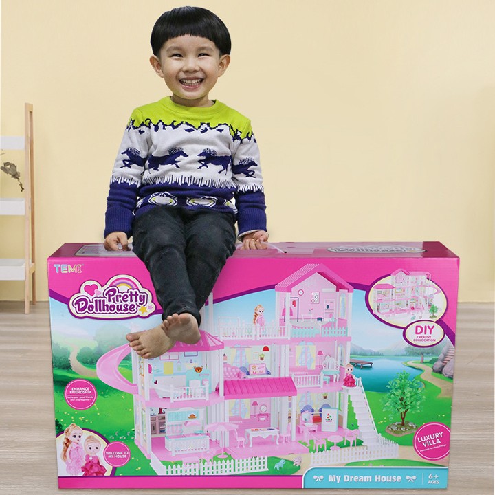 Đồ Chơi Lắp Ghép Ngôi Nhà Biệt Thự Búp Bê Màu Hồng Xinh Xắn Cho Bé Gái