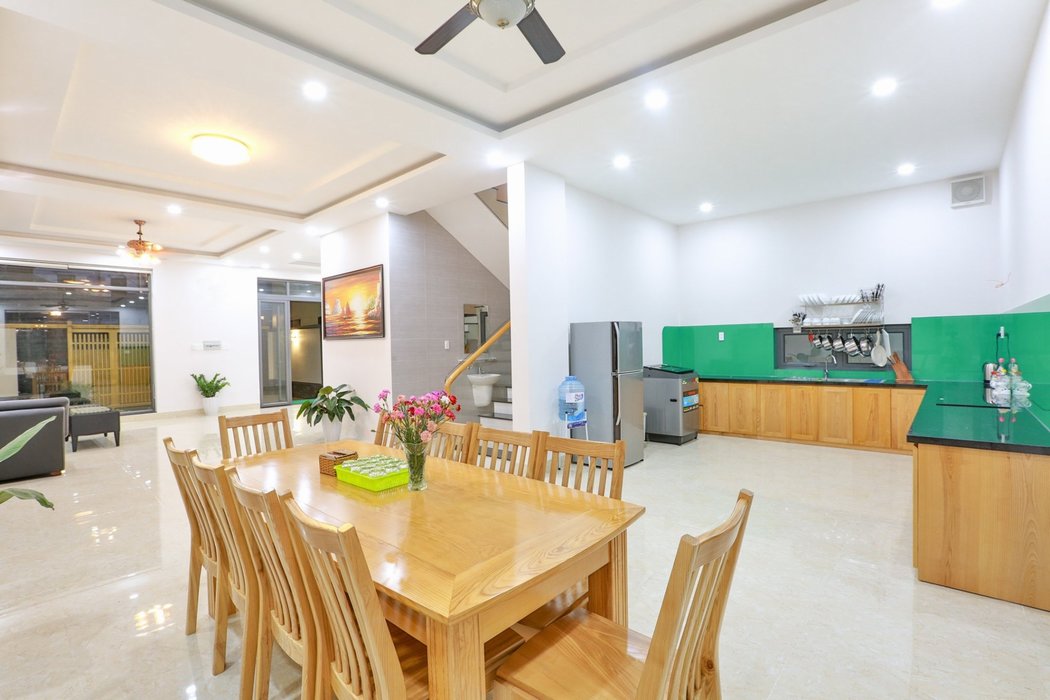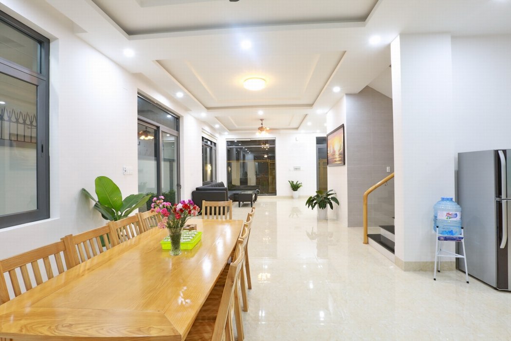 Điểm độc đáo nhất của Don Luxury Villa Vũng Tàu là căn bếp tiện nghi, phòng ăn được thiết kế theo phong cách Châu Âu” được ví như một nhà hàng hải sản thu nhỏ, tách biệt hoàn toàn với không gian phòng ngủ và phòng khách. Đó là sự tinh tế trong thiết kế mà chưa một villa nào ở Vũng Tàu có được. Bên trong được trang bị đầy đủ tiện nghi: máy lạnh, lò vi sóng, Bếp BBQ, chén, dĩa,… và những bộ bàn ghế đáp ứng đoàn đông người.