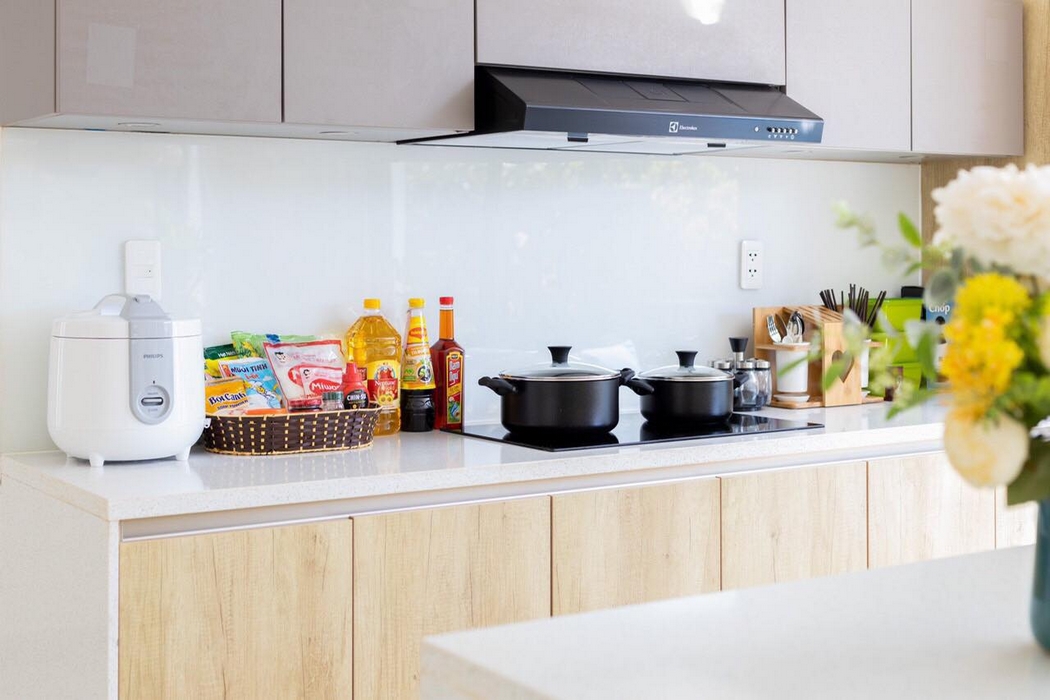Không gian sống tại Don Pool Villa Oceanami Long Hải được thiết kế tiện nghi đến từng chi tiết nhỏ để khách du lịch luôn cảm thấy thoải mái như đang cư ngụ trong chính ngôi nhà của mình. Đó là sự kết hợp hài hoà giữa sắc xanh tươi mới và ghi xám ấm áp, hay từng phiến đá với những hoa văn theo phong cách cổ điển - tưởng như ngẫu hứng mà lại tinh tế khi được ốp chỉn chu trong phòng tắm.