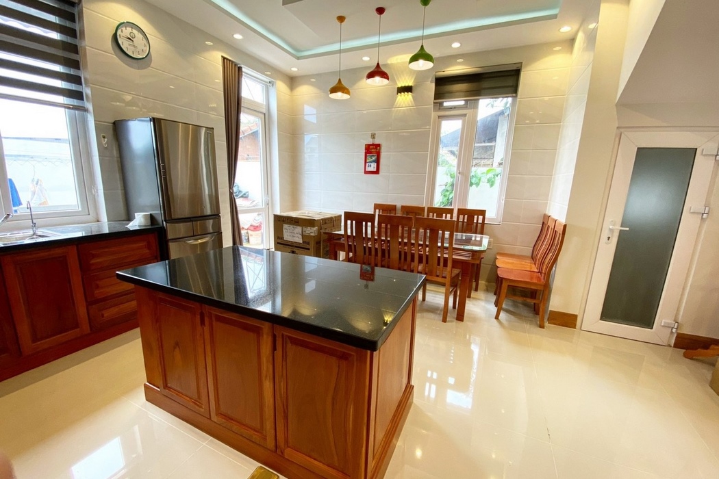 Căn villa không chỉ có thiết kế đẹp mà còn được trang bị đầy đủ tiện nghi như: Tủ lạnh, lò vi sóng, dụng cụ nấu ăn, tivi màn hình phẳng… Những tiện nghi đầy đủ sẽ giúp du lịch của bạn thêm phần tiện lợi và thoải mái.