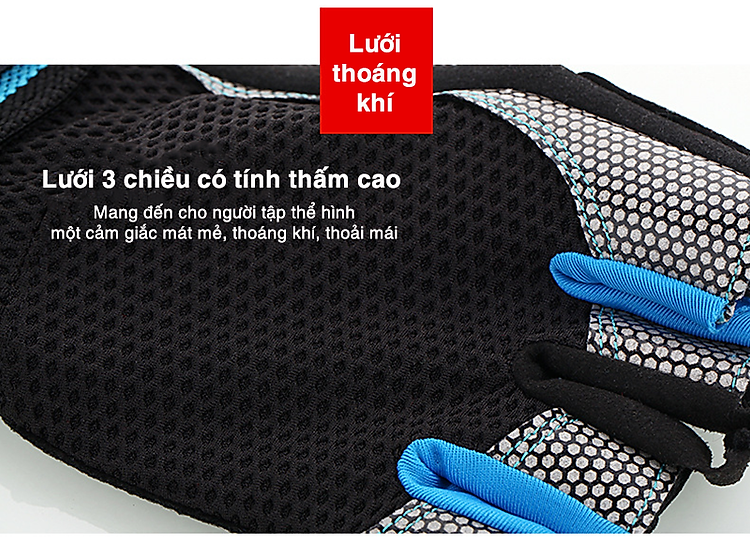 - Trên lòng bàn tay được sử dụng chất liệu vải thoáng khí giúp cho đôi bàn tay thoải mái, thoáng khí, thấm hút mồ hôi.