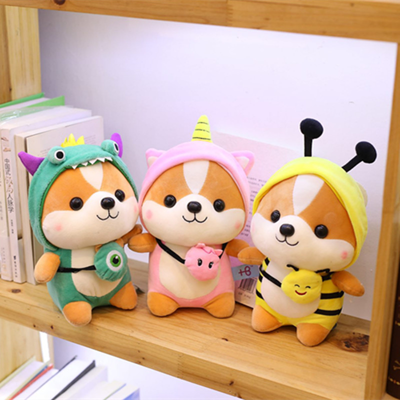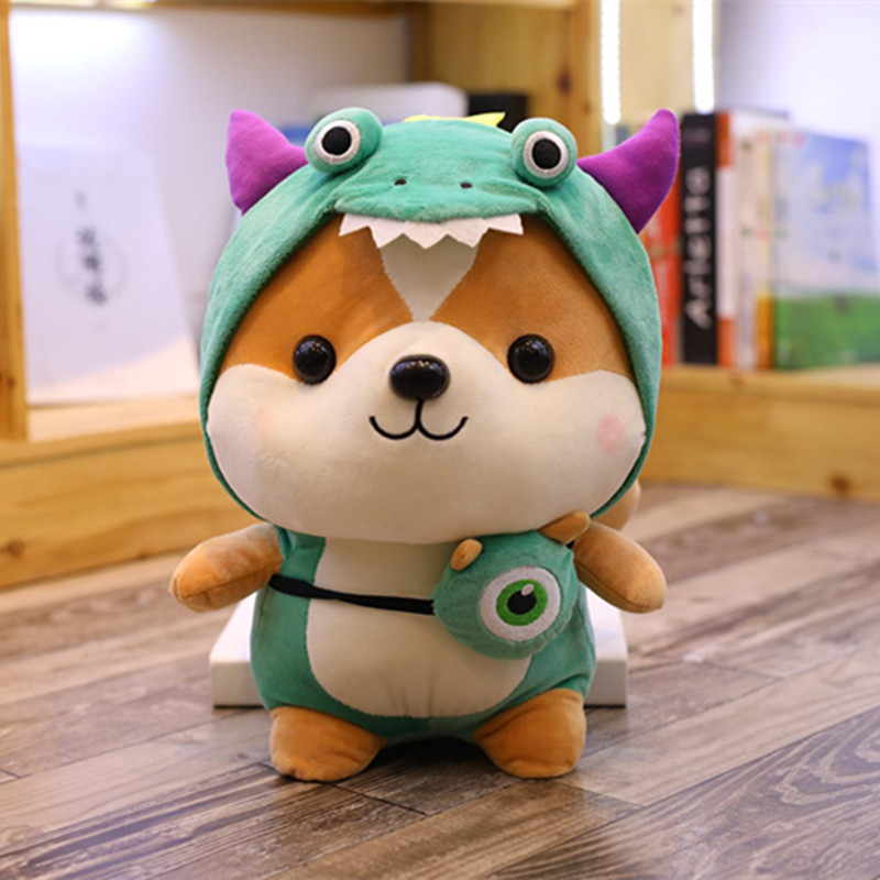 Gấu bông gối ôm chú chó Shiba Cosplay đáng yêu nghộ nghĩnh, thiết kế gương mặt ngây thơ mặc trang phục áo, túi dạo phố vô cùng sành điệu.