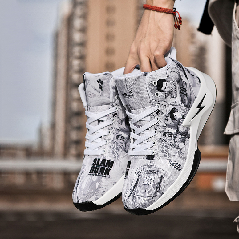 Giày bóng rổ màu trắng với họa tiết từ bộ truyện Slamdunk cực kì cool ngầu