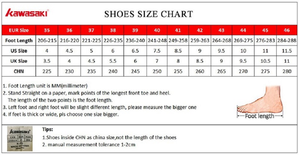 • Điểm cộng với thương hiệu giày cầu lông Kawasaki, không chỉ đa dạng về kiểu dáng mà còn có nhiều màu sắc khác nhau,phù hợp với mọi độ tuổi chơi thể thao.
