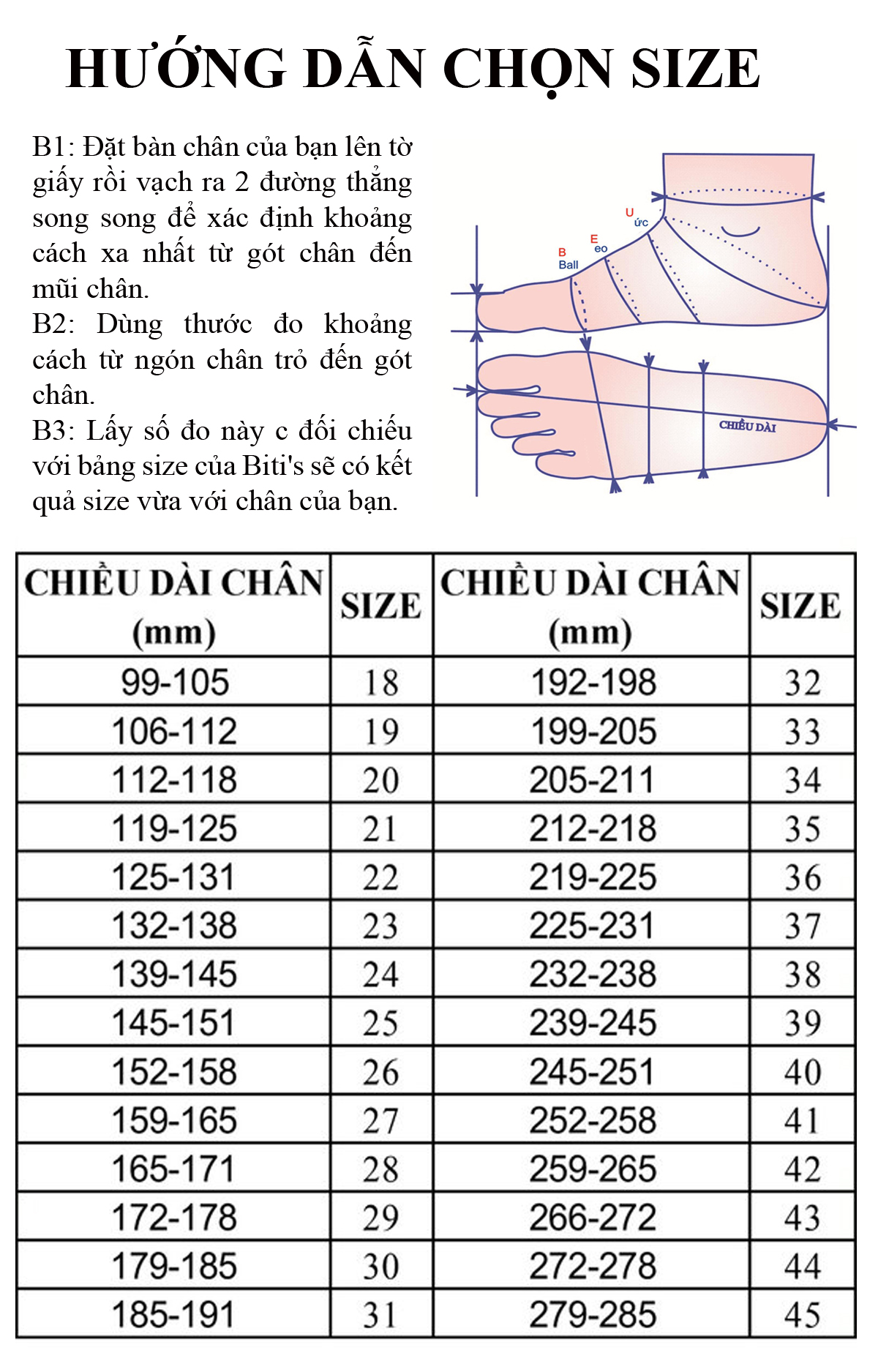 Hướng dẫn chọn Size: