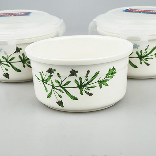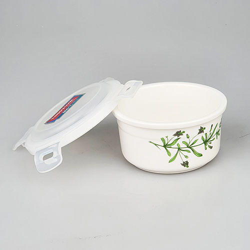 Với thiết kế hoa văn hiện đại và sang trọng,nắp nhựa với thiết kế khóa 4 chân và ron cao su silicone đảm bảo thức ăn được bảo quản tốt.