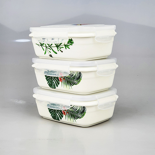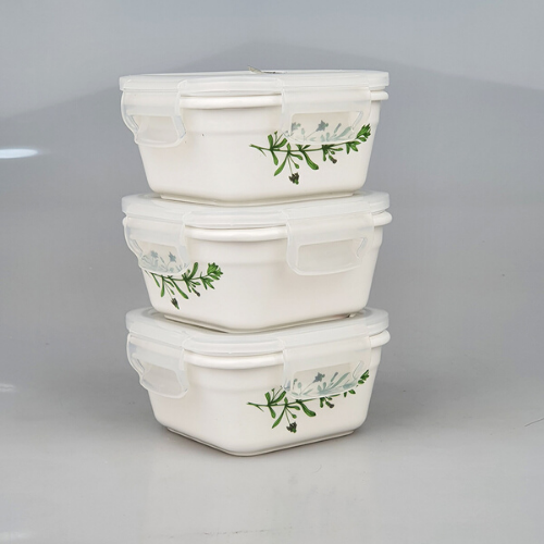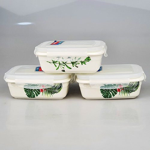 Bộ 3 hộp đựng cơm sứ xinh xắn Hình Chữ Nhật 325ml x 3 Hộp/ Hình Vuông 275ml x 3 Hộp / Hình tròn 250ml x 3 hộp + Tặng túi đựng giữ nhiệt cao cấp