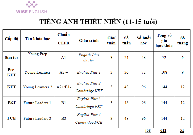 2. Các khóa học tiếng Anh thiếu niên (TEENS):