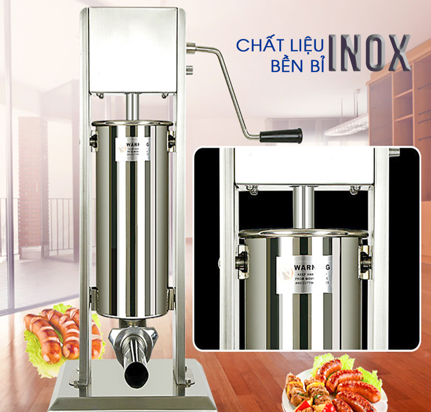 Máy được trang bị tới 4 phễu đùn xúc xích có kích thước: 15, 20, 30, 35mm, bạn có thể nhồi được nhiều loại xúc xích theo nhu cầu. Phễu đùn cũng được làm từ inox chống gỉ nên rất an toàn vệ sinh.