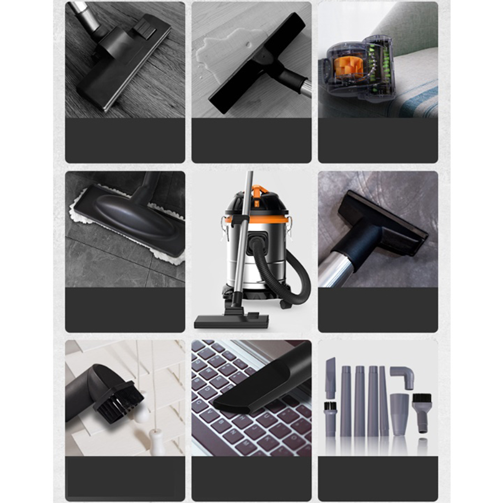 Máy hút bụi gia đình công suất lớn 1200W có chức năng hút ướt và khô, độ ồn 80dB, thể tích thùng máy 15L