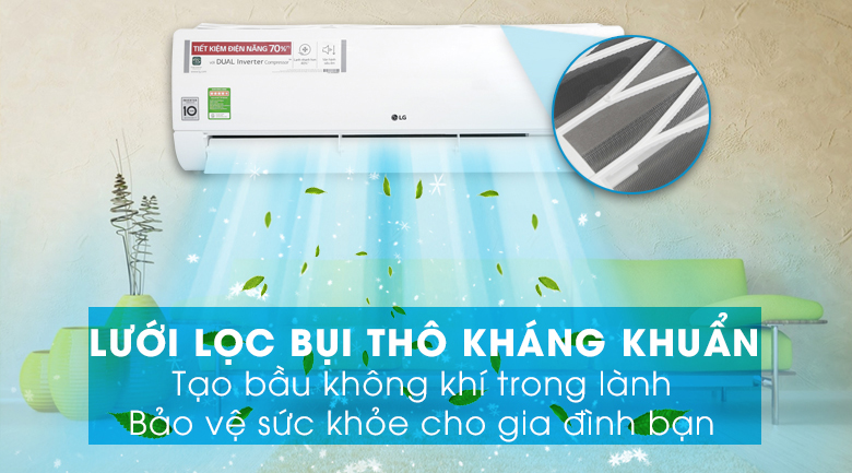 Máy lạnh Inverter trang bị tấm vi lọc bụi kháng khuẩn cao, giúp khử sạch mùi hôi và vi khuẩn gây hại, cho phép loại bỏ tất cả các mùi khó chịu như khói thuốc lá, khí thải xe và những vi khuẩn, bụi bẩn có khích thước siêu nhỏ. Bên cạnh đó độ bền cũng được nâng cao, dễ dàng hơn trong việc vệ sinh.
