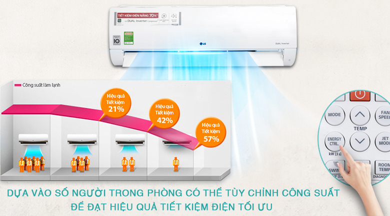 Cùng với chế độ kiểm soát năng lượng chủ động Enery Ctrl, tức là dựa vào số người trong phòng mà người dùng có thể thay đổi công suất của máy để tiết kiệm tối đa điện năng lên đến 57% khi chỉ có một người trong phòng.